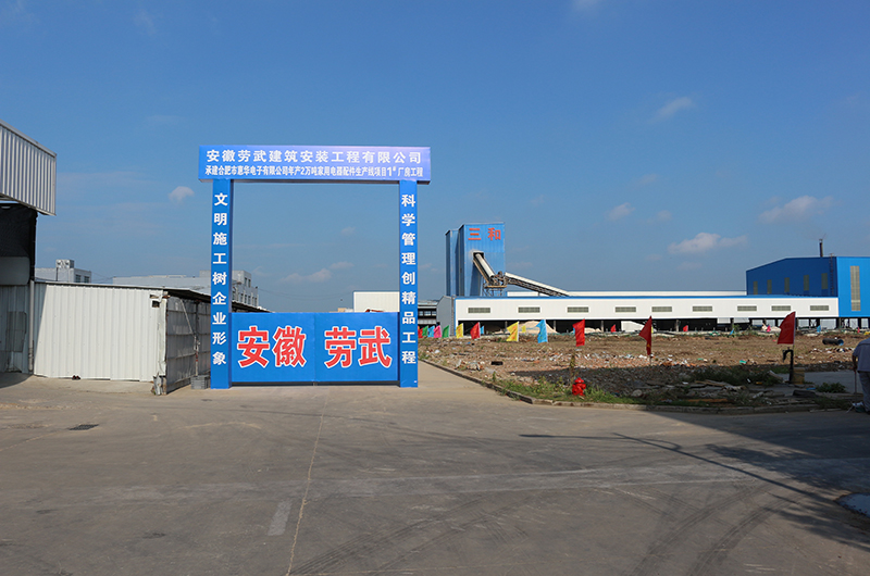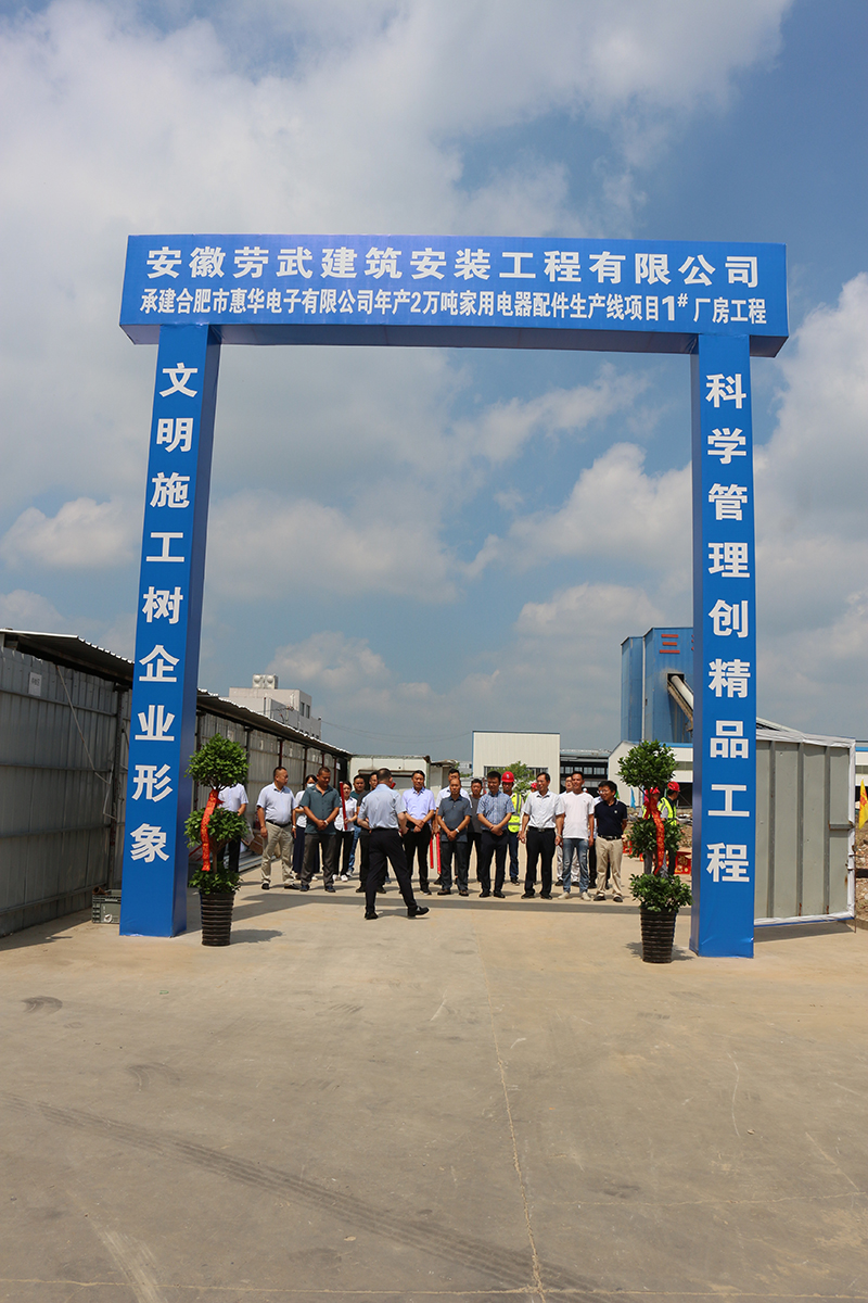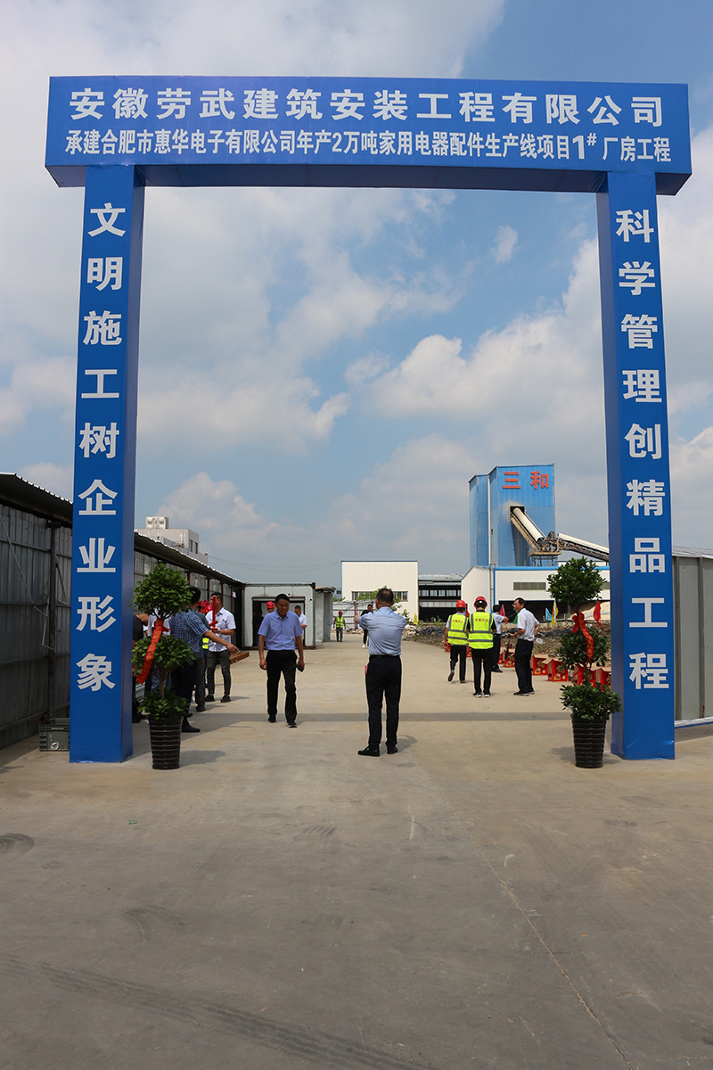 【概要描述】合肥市惠華電子有限公司在肥西縣嚴店鎮政府大力支持,安徽勞武建筑安裝工程有限公司、安徽鼎峰鋼結構科技有限公司大力協助,1#廠房完全具備施工條件,于2022年7月24日正式啟動1#廠房建設。